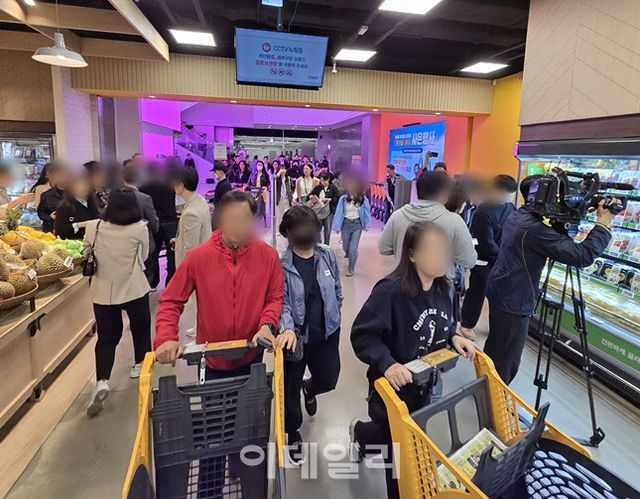 이마트(139480) 식료품 특화매장 ‘푸드마켓 고덕점’ 개점 첫날인 17일. 매장 오픈 시간인 10시가 되자 매장 밖에서 줄 서 있던 이들이 매장 안으로 물밀듯 쏟아져 들어오기 시작했다. 한정판으로 내놓은 인기 희귀 위스키 매대는 삽시간에 동났고 과일, 채소, 육류, 수산 코너는 물건을 담으려는 사람들로 붐볐다. 강남 송파구에서 왔다는 주부 신모씨는 “요즘 시대에 이 정도면 장 보러 올 맛이 난다”며 “원래는 집 근처 마트를 갔는데 이젠 이곳에서 장을 봐야겠다는 생각이 든다”고 했다.