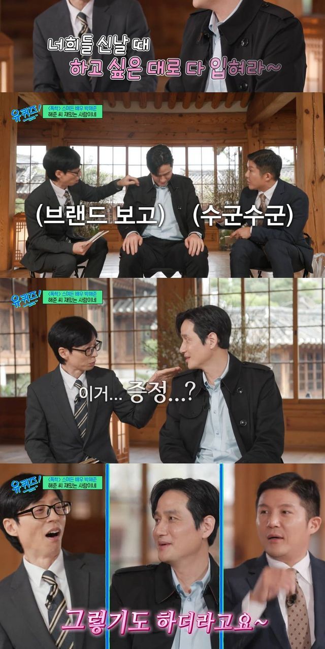 박해준은 "아 진짜요? 그래요?"라며 놀랐고, 조세호는 "주시는 경우도 있지만 대부분이 입고 반납하는 시스템이다"라고 이야기했다. 박해준은 "중요할 때 입는다"고 했고, "주변에서 너무 신나하고 있다"고 말했다.