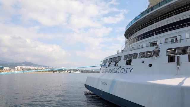 중국 첫 13만톤급 대형 크루즈선인 '아도라 매직 시티(Adora Magic City)호'가 2023년 12월 28일 오전 서귀포시 강정동 제주민군복합형관광미항에 입항해 있다. / 뉴스1