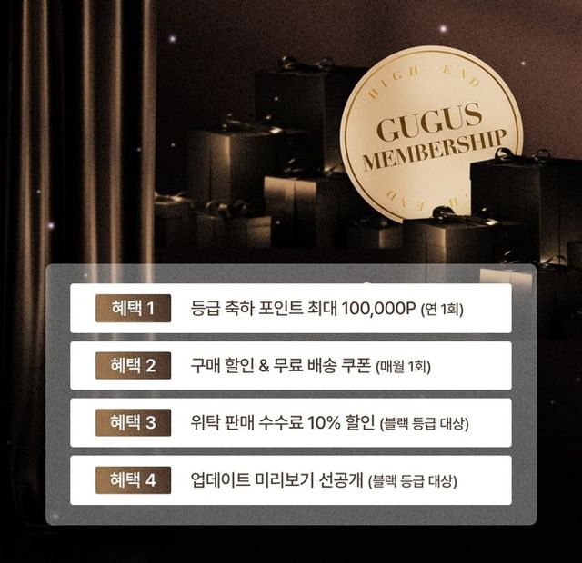 특히 블랙 등급 고객에게는 위탁 판매 수수료 10% 할인 혜택과 함께, 업데이트 예정 상품을 가장 먼저 확인할 수 있는 '미리보기' 서비스도 제공된다. 멤버십 등급은 매년 2월, 전년도 이용 내역을 기준으로 산정되며, 해당 등급은 다음 해 1월 말까지 유지된다.
