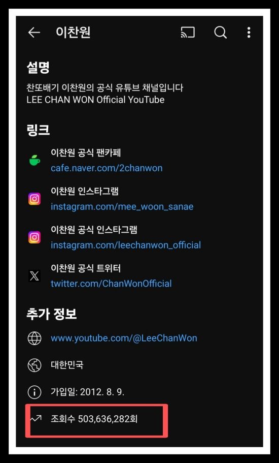 (엑스포츠뉴스 이정범 기자) 이찬원의 공식 유튜브 채널이 최근 조회수 5억 뷰를 넘어섰다.