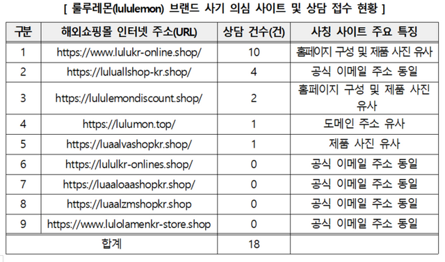 17일 한국소비자원에 따르면 지난달 1일부터 지난 15일까지 룰루레몬 관련 온라인 쇼핑몰 피해 상담 건수는 18건에 달했다.