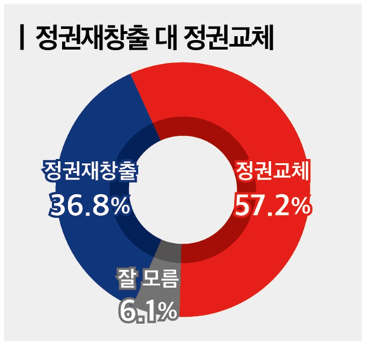 정권교체와 정권 재창출 중 어떤 것이 필요한지를 묻는 질문에, 정권교체는 57.2%, 정권 재창출은 36.8%로 나타났다.