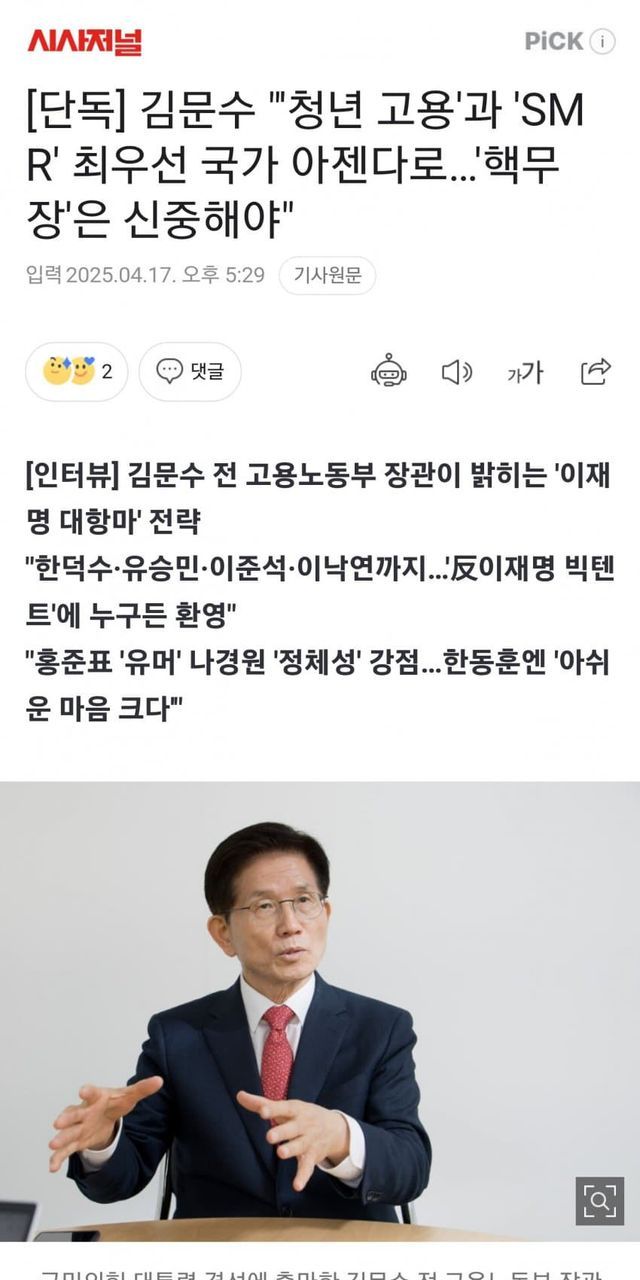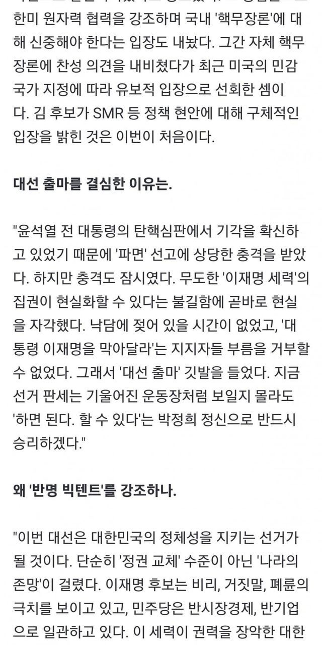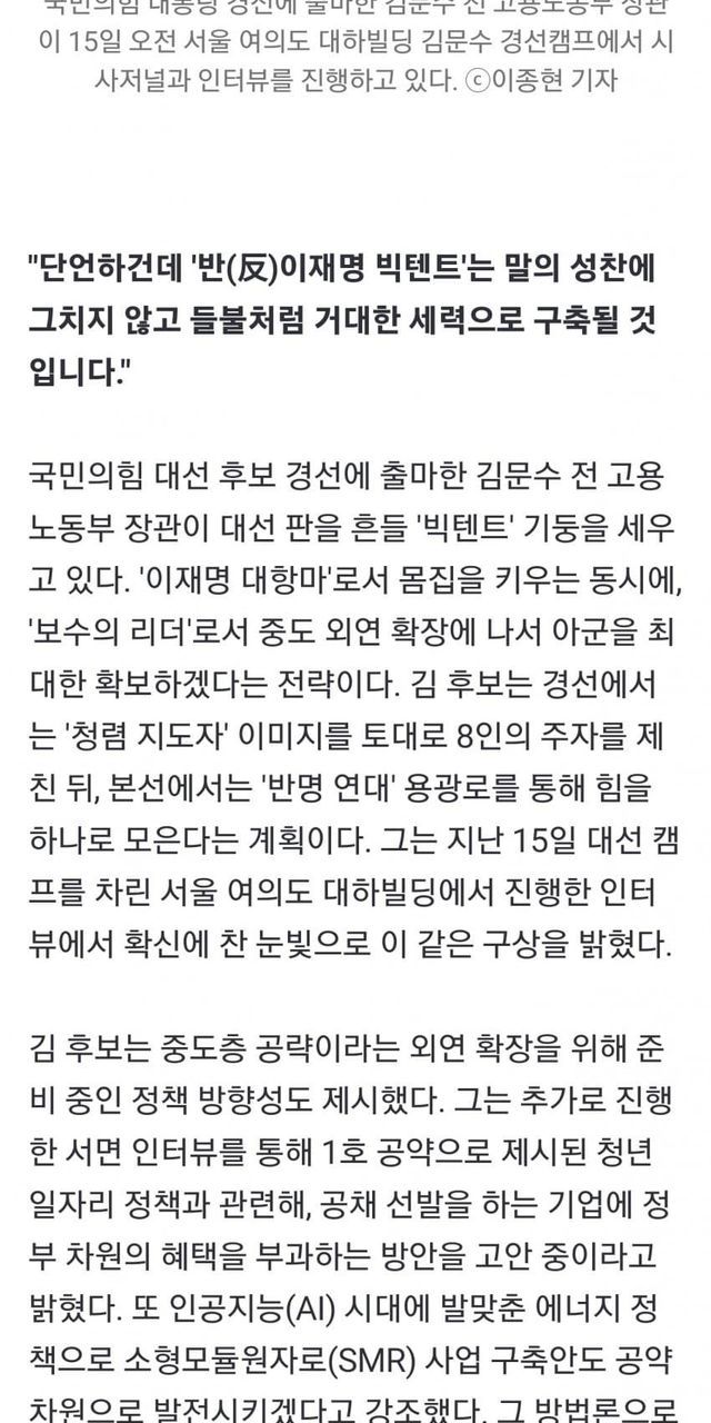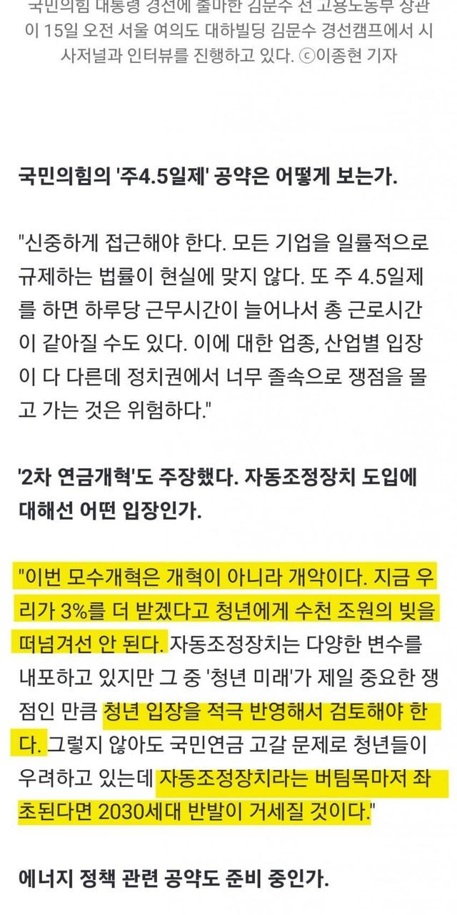 김문수 "청년고용,SMR 최우선아젠다..이번 모수개혁은 개악"