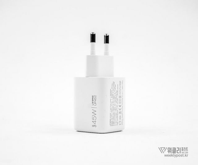 최신 충전기에서 가장 중요한 성능은 어떨까. 포트는 USB PD 3.0 타입C 포트다. 이 포트는 일반 포트로는 불가능한 고출력 전원을 공급할 수 있다. 15볼트(V)의 전압과 함께 3암페어(A) 45와트(W) 혹은 2.25암페어 45와트를 지원한다. PD충전을 지원하는 다양한 기기에 고속충전이 가능하다. 노트북인 애플 맥북도 에어제품 정도는 충전 가능하다. 스마트폰은 물론이고 전력 소비가 큰 태블릿이나 최신 휴대용 게임콘솔까지 빠르게 충전할 수 있다.