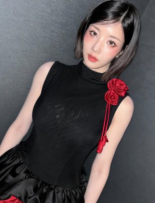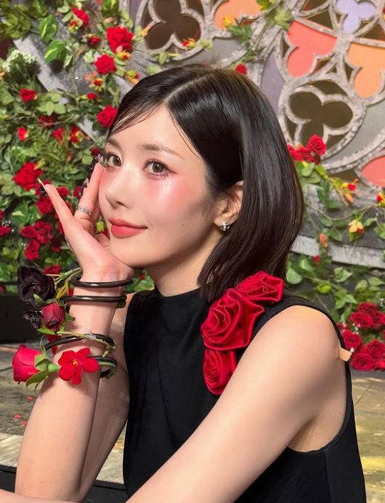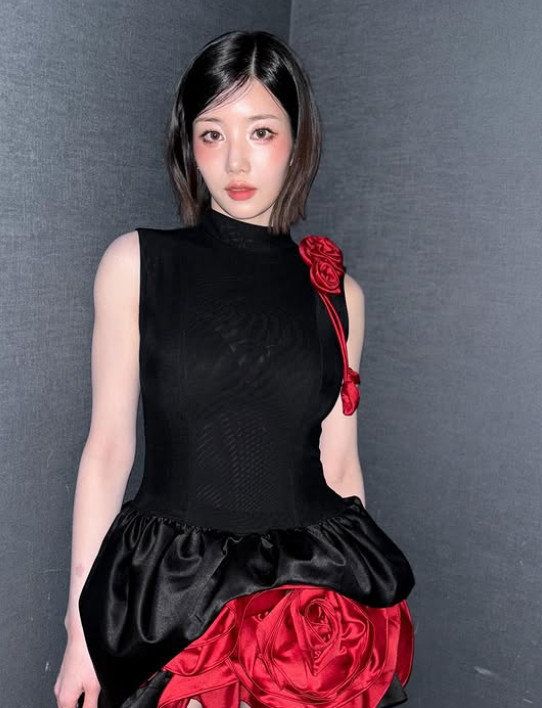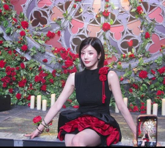 공개된 사진 속 권은비는 마치 한 송이의 장미꽃을 연상시키는 의상을 입고 여러 장소에서 포즈를 취하고 있다.