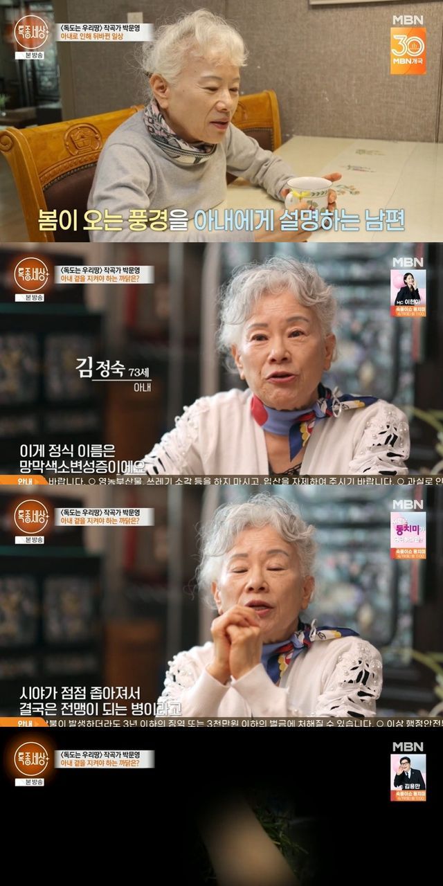 늘 노심초사 아내의 그림자를 따라다니는 박문영은 "아내가 없었으면 저는 정말 살아있지 않았을 것 같은 그런 생각이 든다. 정말 고맙고 평생 그 은혜를 갚아야 된다고 생각한다"며 아내를 향한 마음을 표했다.