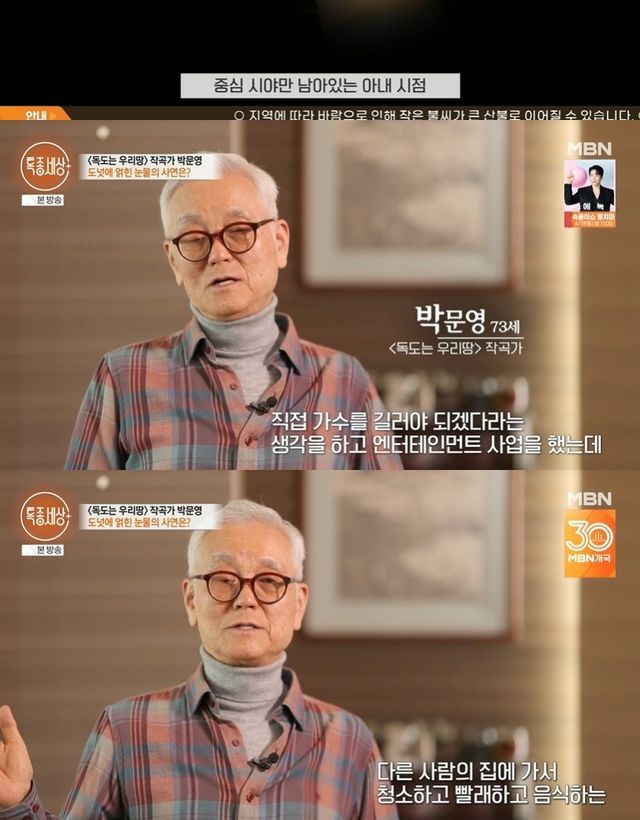 17일 방송된 MBN '특종세상'에는 '독도는 우리땅'의 작곡가 박문영의 일상이 공개됐다.