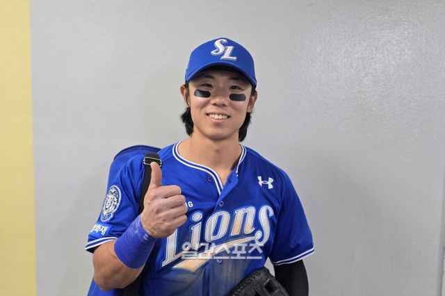 4연패 탈출, 승리의 숨은 공신이 수줍게 웃었다. 혼신의 전력질주와 쐐기 적시타로 팀의 승리를 이끌었지만, 삼성 라이온즈 외야수 김성윤은