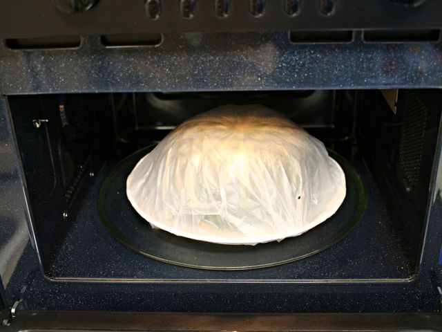 다시 랩으로 감싼 뒤 전자레인지에 넣고