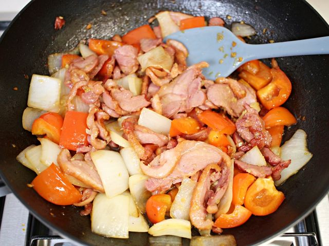 양파랑 파프리카도 아삭한 식감 살려서 볶아주세요.