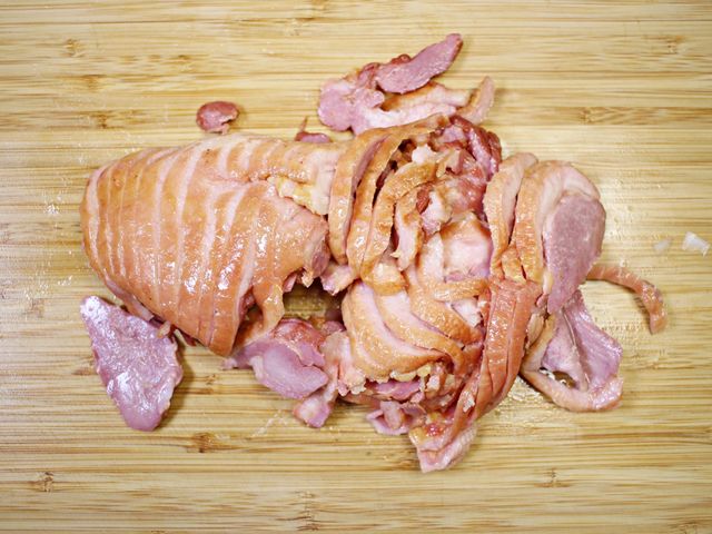 속을 파낸 뒤 볶아놓은 훈제오리를 담아주세요.