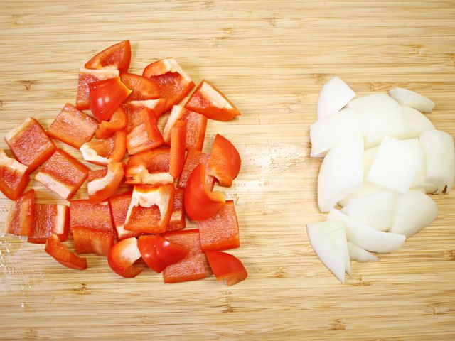 양파랑 파프리카는 한입 크기로 썰어주세요.