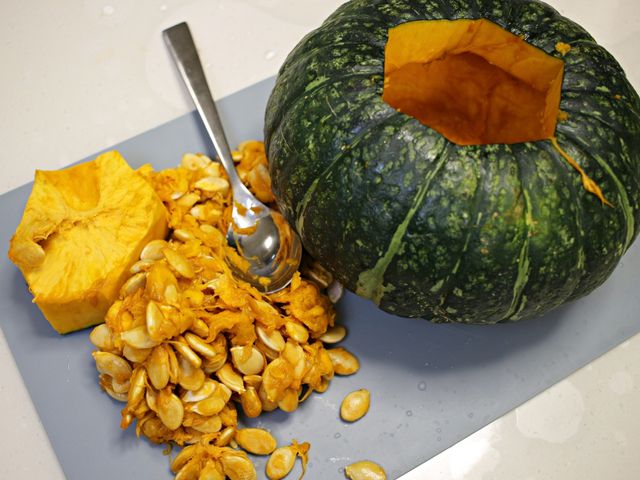 단호박이 잘 익으면 칼이 잘 들어가서 손질하기가 쉬워요.