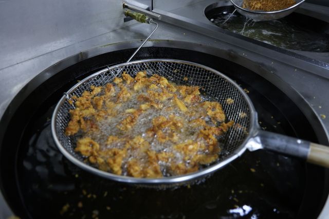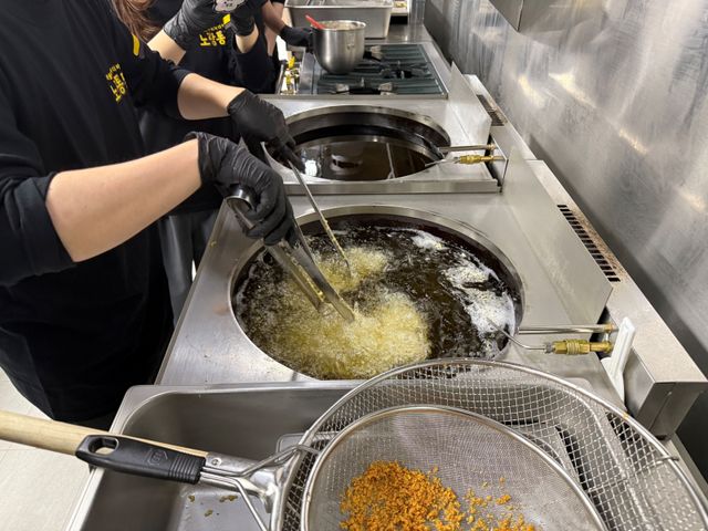 반죽된 닭은 곧장 가마솥에서 튀겨진다. 약 6분간 치킨 조각들이 뭉치지 않게 휘저어 주면 황금빛 튀김옷을 입은 노랑통닭 프라이드가 완성된다. 치킨이 가장 바삭해지는 최적의 온도(156도)를 지켜내는 가마솥 덕분에, 겉은 바삭하고 속은 촉촉했다.
