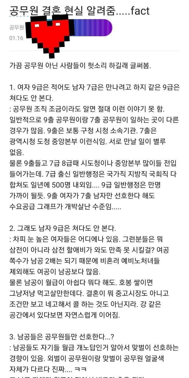 블라인드에 올라온 공무원 결혼 현실
