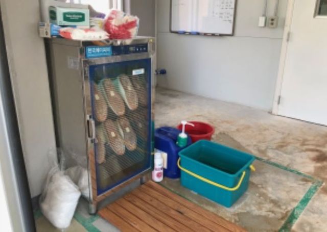 이때 긴 의자나 넓은 발판을 함께 설치하면 출입인이 경계선을 명확히 인식할 수 있고, 소독과 환복을 쉽게 할 수 있어 방역 행동을 유도하는 데 도움이 된다. 또한, 신발은 내외부용으로 구분해 보관·사용해 오염 경로를 차단한다.