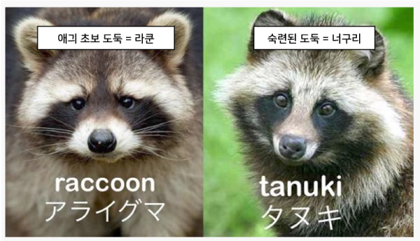 사실 너구리랑 라쿤은 전혀 다른 동물인데,