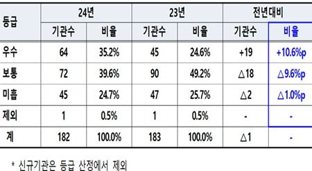 주목할 만한 점은 한국보훈복지의료공단이 2년 연속 '미흡' 판정에서 '보통' 등급으로 상승했다는 것이다.