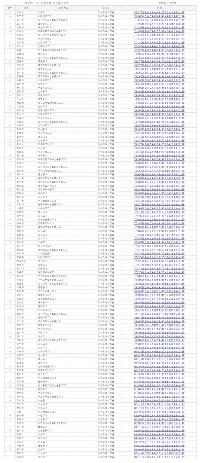 ▲여고부 1.황보민 -7(우승), 2.표송현 -5, 3.유아현 -2, 4,박시우 -2, 5.신예지 -1, 6.노유경 E, 7.김가희 E, 8.한효리 E, 9.송지윤 E, 10.이한음 +1.