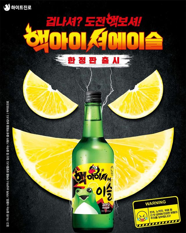 그렇다면 비주얼은 어떤 모습을 자랑할까. ‘핵아이셔’의 톡톡 튀는 옐로우, 블랙 컬러 디자인 조합이 멀리서부터 강렬한 존재감을 드러낸다. 뿐만 아니라 짜릿한 신맛에 놀란 듯 귀엽게 찡그린 두꺼비로 ‘핵’의 강도를 시각화 했다.