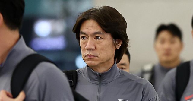 홍명보 한국 축구 대표팀 감독이 지난해 10월 6일 오후 2026 북중미 월드컵 아시아 3차 예선이 열리는 요르단으로 출국하기 위해 인천국제공항 1터미널 출국장으로 들어서고 있다. / 연합뉴스