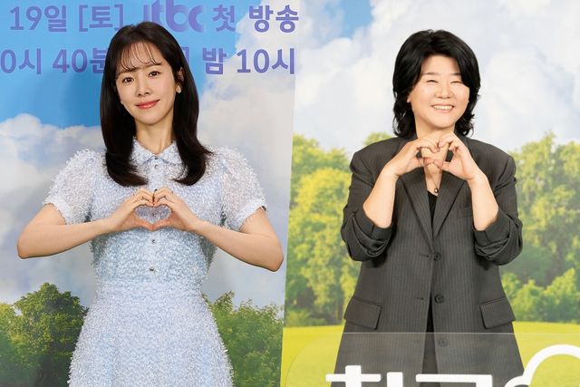 '천국보다 아름다운'은 80세 모습으로 천국에 도착한 이해숙이 30대 모습으로 젊어진 남편 고낙준과 재회하면서 벌어지는 현생 초월 로맨스. 극 중 한지민은 기억을 잃고 천국에 나타난 정체불명 여인 '솜이' 역, 이정은은 이해숙을 부모이자 스승처럼 따르는 일수 파트너 겸 후계자 '이영애' 역을 맡았다.