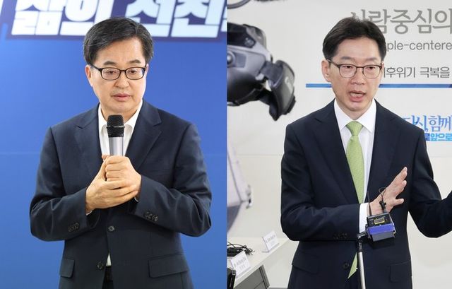 더불어민주당 대선 경선 후보자 (왼쪽부터) 김동연 경기지사와 김경수 전 경남지사. ⓒ 연합뉴스