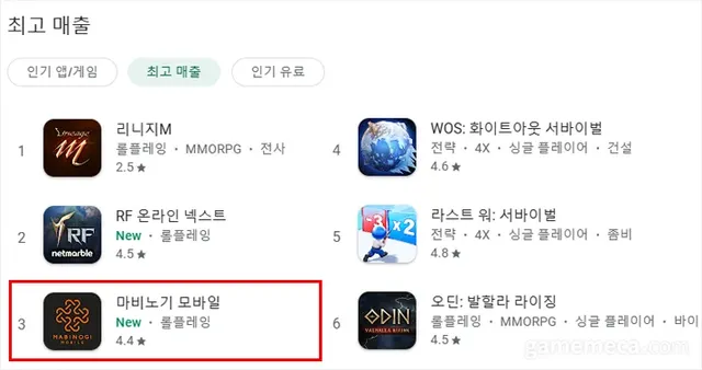 상승세 지속, 마비노기 모바일 구글 매출 3위까지