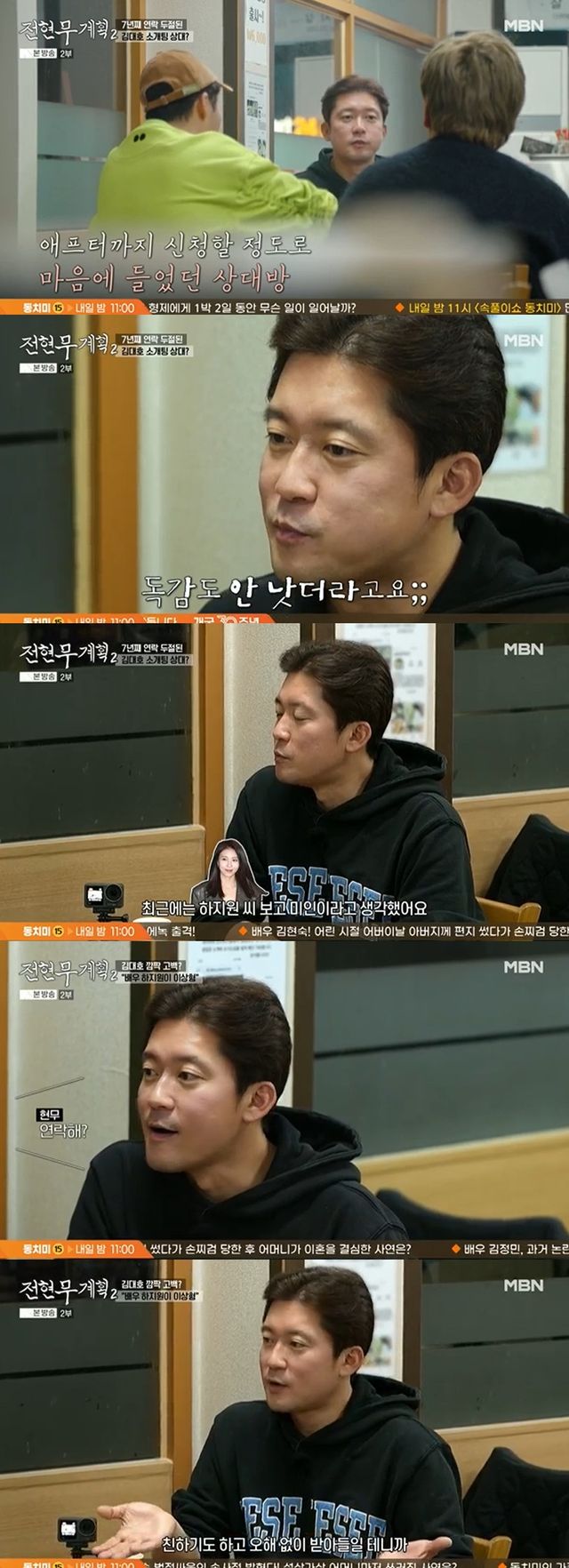 이어 "(하지원과) 아직 연락하냐"는 질문에 김대호는 "연락한다"고 쿨하게 고백했다.