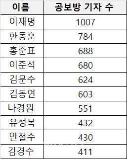 그 다음은 한동훈 국민의힘 후보의 방으로 784명, 그 뒤를 홍준표 후보(688명), 이준석 개혁신당 후보(680명)가 잇고 있었습니다. 여론조사 지지율과는 또 다른 풍경입니다. 하지만 기자들이 ‘어떤 후보의 소식을 더 자주 접하려고 하는가’를 보여주는 참고자료로는 나름 의미가 있어 보입니다.