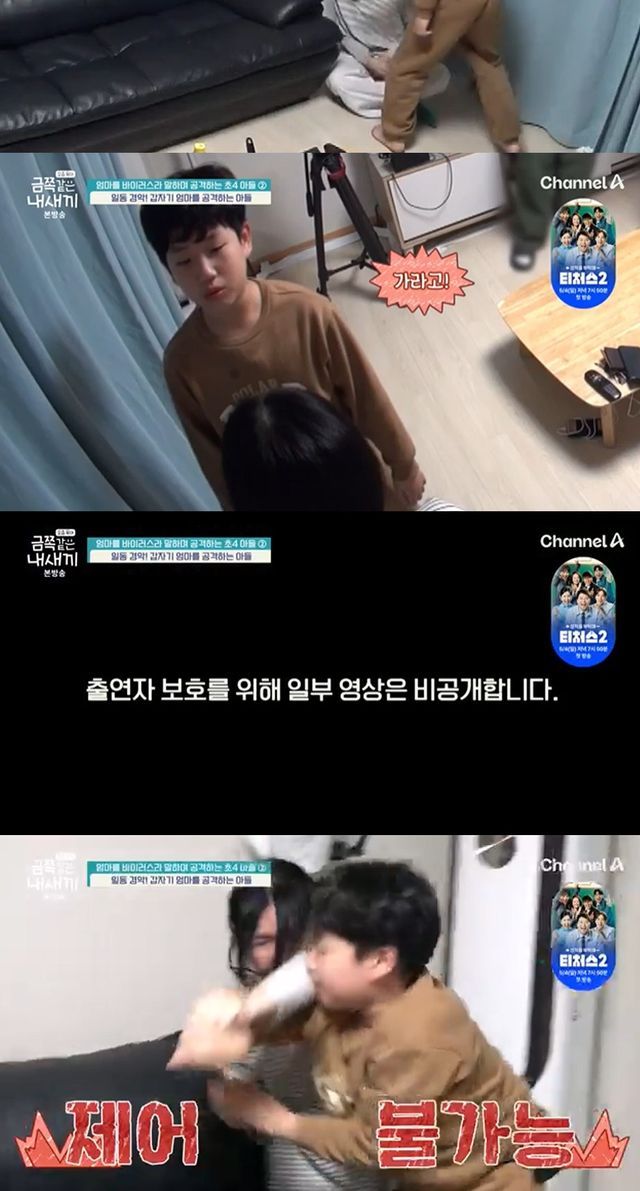 금쪽이는 이어 아무 이유없이 엄마를 가격했고, 살벌한 소리가 흘러나왔다. 이를 보던 장영란, 정형돈은 심각한 충격을 받았다.