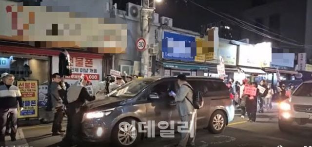 이들은 “사전투표 폐지하라” 등 구호를 외치다 “짱X”, “빨갱이” 등 혐오 발언을 쏟아냈다. 이들을 지켜보던 건대입구역 주변 양꼬치 거리 내 한 중국 음식점 직원들이 항의하며 양측의 말다툼이 시작됐다.