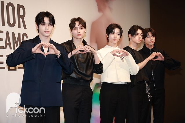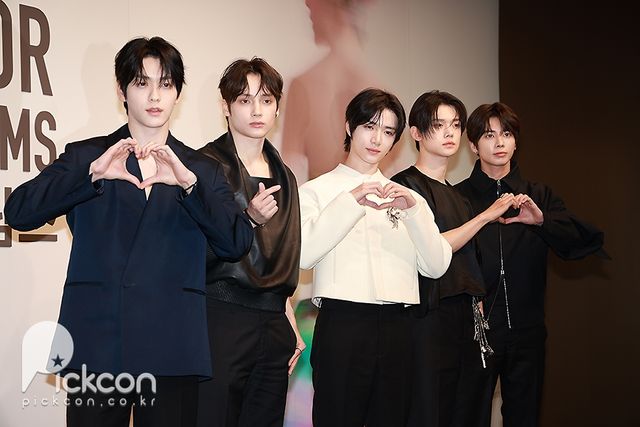 투모로우바이투게더가 손하트 포즈로 시선을 사로잡았다.