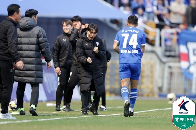 그는 "패배는 마음이 아프다. 하지만 우리가 백3 전술을 테스트하고, 박우진 선수가 데뷔전을 치렀다. 그리고 (김)현이가 돌아온 게 아주 반가운 소식이다. 순식간에 슈팅 세 개를 만드는 걸 보면 긍정적이었다. 패배를 빼면 김천전은 아주 좋은 경기였다"고 했다.
