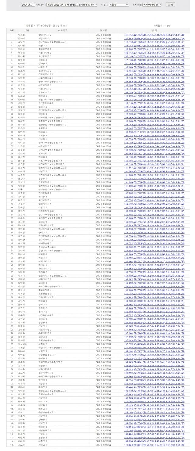 [스릭슨배 중고골프대회 여자부 최종2R]1.박조은 -3(우승), 2.장사언 -1, 3.김수빈 E, 4.정다원 +1, 5.권지혜 +2, 6.서채영 +2, 7.김가희 +2, 8.임진원 +3, 9.김아란 +3, 10.정지우 +4.