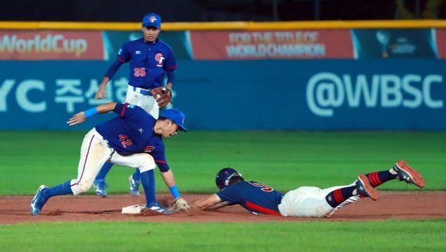 2019년 9월 8일 제29회 세계청소년야구선수권대회(WBSC U-18 야구월드컵) 결승전 미국과 대만의 경기에서 미국 1루 주자 타일러 소더스트롬이 2루 도루에 성공하고 있다. / 연합뉴스