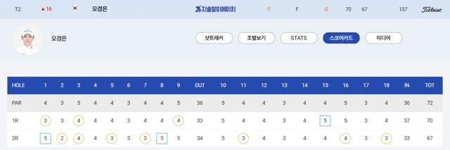 2R : 5언더파 67타(버디 7개, 보기 2개) 합계 7언더파 137타 공동2위