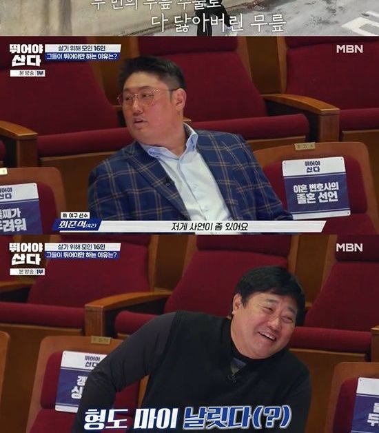19일 첫 방송된 MBN 예능 ‘뛰어야 산다’에는 전 야구 선수 최준석과 래퍼 슬리피가 등장하는 모습이 전파를 탔다.