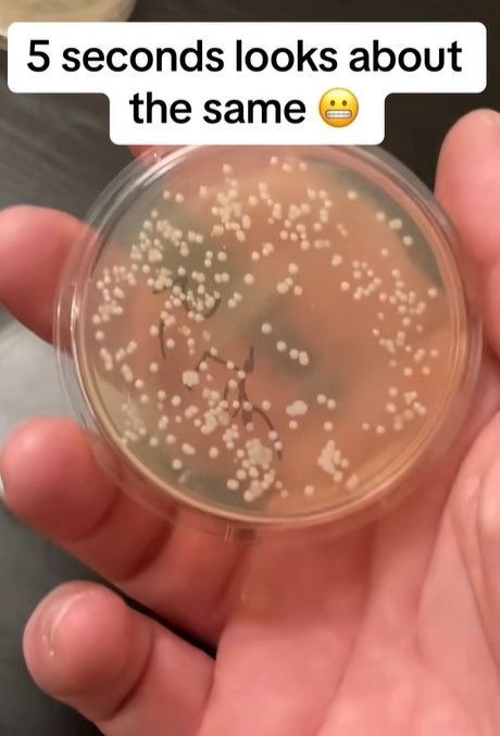 그는 각각의 페트리 접시를 보여주면서 "떨어트린 직후 바로 줍는 것을 가정한 0초도 너무 길다. 5초든 60초든 (결과는) 충격적이다"라고 했다. 오염도는 시간과 무관하게 모두 높게 나타났다는 것.