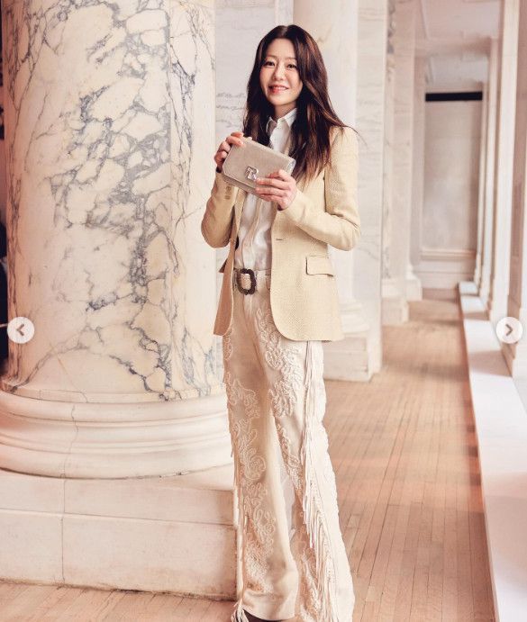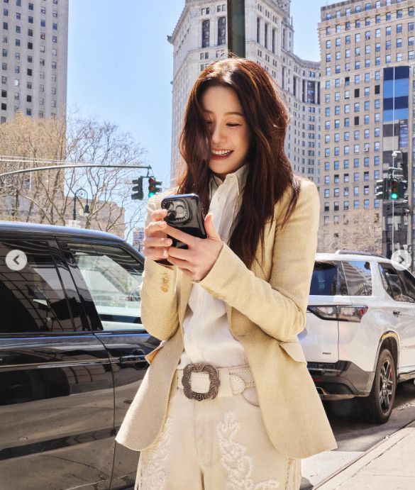 사진 속 고현정은 뉴욕의 이국적인 풍경을 배경으로 자연스러운 매력을 뽐내고 있다. 휴대전화를 응시하며 환하게 미소짓는 모습은 자체발광 아우라를 발산하며 감탄을 자아낸다. 특히 수많은 인파 속에서도 단연 돋보이는 그녀의 독보적인 미모는 시선을 집중시킨다. 아이보리 컬러의 세련된 팬츠를 완벽하게 소화하며 늘씬한 비율을 자랑하는 모습 또한 인상적이다.