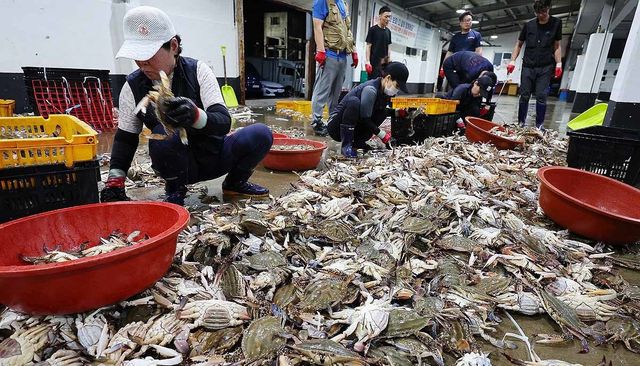 올해는 상황이 다르다. 서해안 주요 어장에서 꽃게 어획량이 크게 줄었다. 이달 들어 17일 동안 위판량은 풍어였던 1년 전에 비해 72% 감소했다. 평어 수준이던 2년 전과 비교해도 48%나 줄었다. 항구에서는 새벽부터 해가 뜨며 경매 준비가 시작되지만, 수조에 담긴 꽃게는 눈에 띄게 적다. 경매는 3분도 채 걸리지 않고 끝나며, 상인들은 한정된 물량을 놓고 치열한 경쟁을 벌인다. 경매 후에는 활꽃게와 냉동용으로 나누는 작업이 빠르게 이뤄지지만, 물량이 워낙 적어 이 과정도 순식간에 마무리된다. 상인들은 부족한 물량을 최대한 활용하기 위해 품질을 꼼꼼히 확인하며, 활력이 좋은 꽃게를 우선적으로 선별한다.