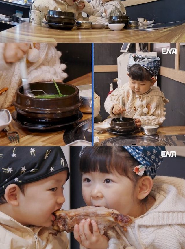 그런가 하면 도아와 승유는 머리를 하던 중 근처 국밥집을 찾는다. 아빠 박정우에 따르면 국밥은 도아의 최애 음식이라고. 식당에서 당당히 국밥 두 그릇을 시킨 도아는 어떻게 먹어야 맛있는지 승유에게 가르쳐주기까지 한다는 전언. 스튜디오 안 어른들도 감탄한 도아 표 국밥 먹방이 호기심을 자극한다.