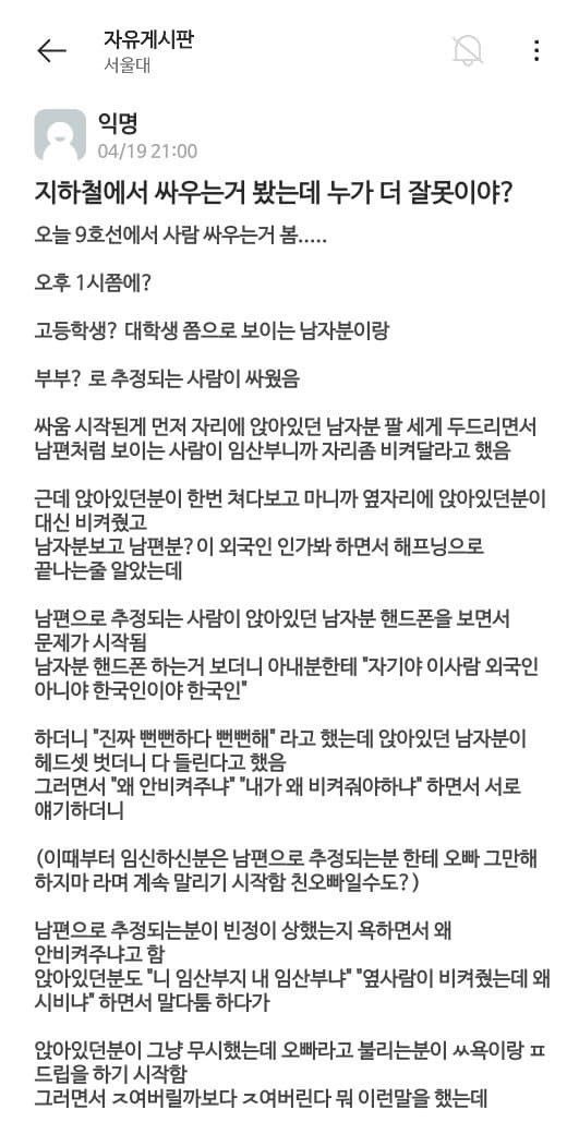 어제자 서울대 에타 임산부석 싸움 갈드컵
