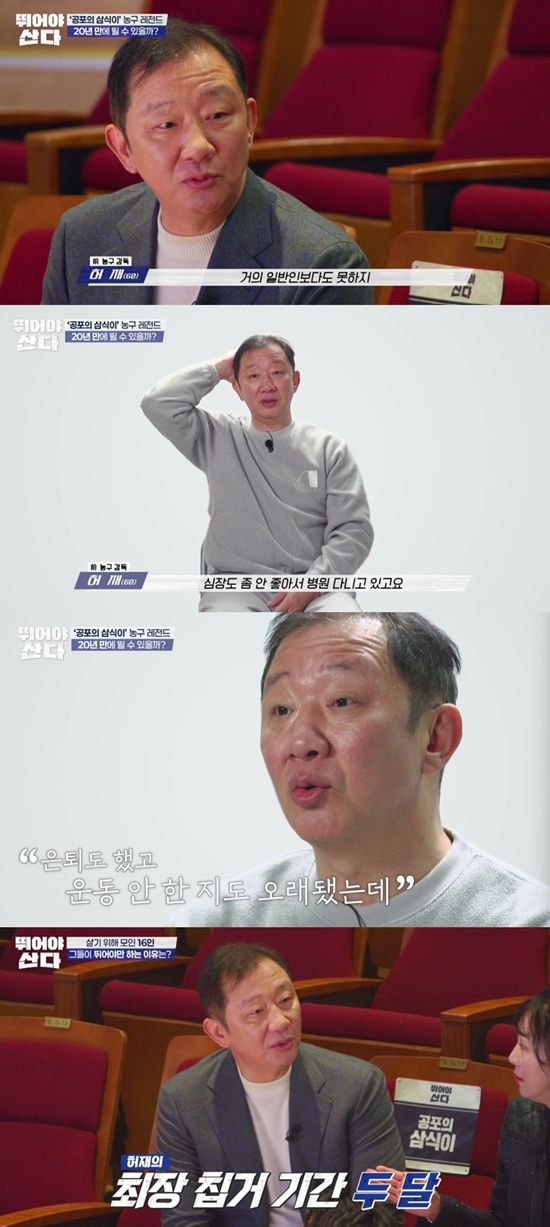 어느덧 농구 코트를 떠난 지 20년이 된 허재는 "거의 일반인보다 못 하다. (정)호영이보다도 못 한다"며 자신의 운동신경을 언급했다.