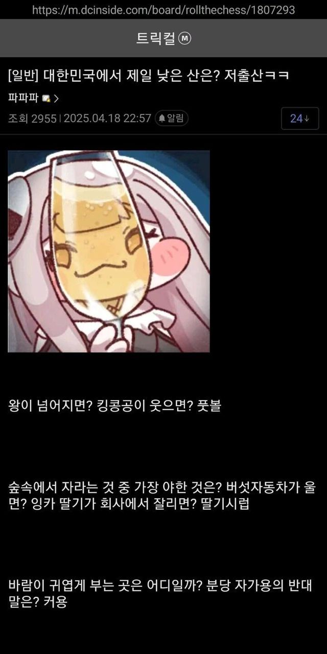 트릭컬)대한민국에서 제일 낮은 산은? 저출산 ㅋㅋ