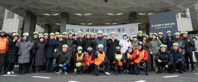 지난 2월 24일 '전기자전거 출퇴근 시범 사업' 발대식. 한라일보 DB