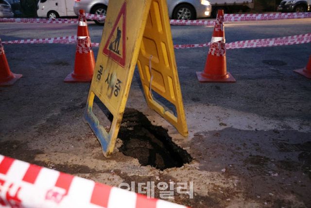 20일 오전 7시 30분쯤 대전 서구 정림동에 있는 한 도로에서 가로 50㎝, 세로 1.2m, 깊이 1.5m 크기의 싱크홀이 발생했다.
