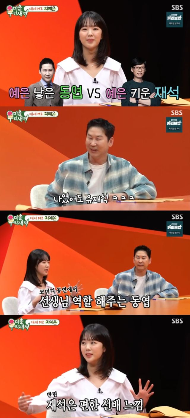 배우 지예은이 신동엽과 유재석 중 유재석을 선택했다.