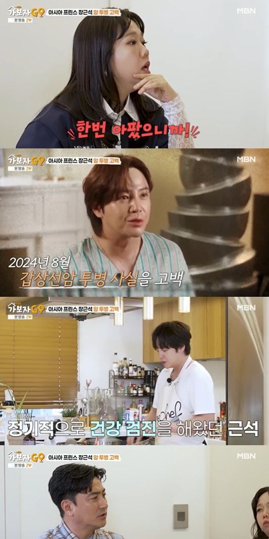 이에 장근석은 "무엇보다 암이라는 단어가 주는 공포감 있잖아요. 아무리 감상선암이 착한 암이라고 하지만 세상에 착한 암이 어딨어요. 한 주 동안 아무한테도 이야기를 안 했다. 가족들한테도 이야기를 안 했다. 받아들이는 데 시간이 조금 필요했었던 것 같다. 나 때문에 가족들이 힘들어할 것 같고"라고 말했다.